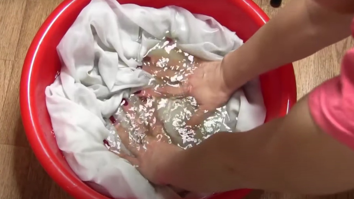 - В получившийся раствор полностью погрузить тюль и оставить примерно на час.