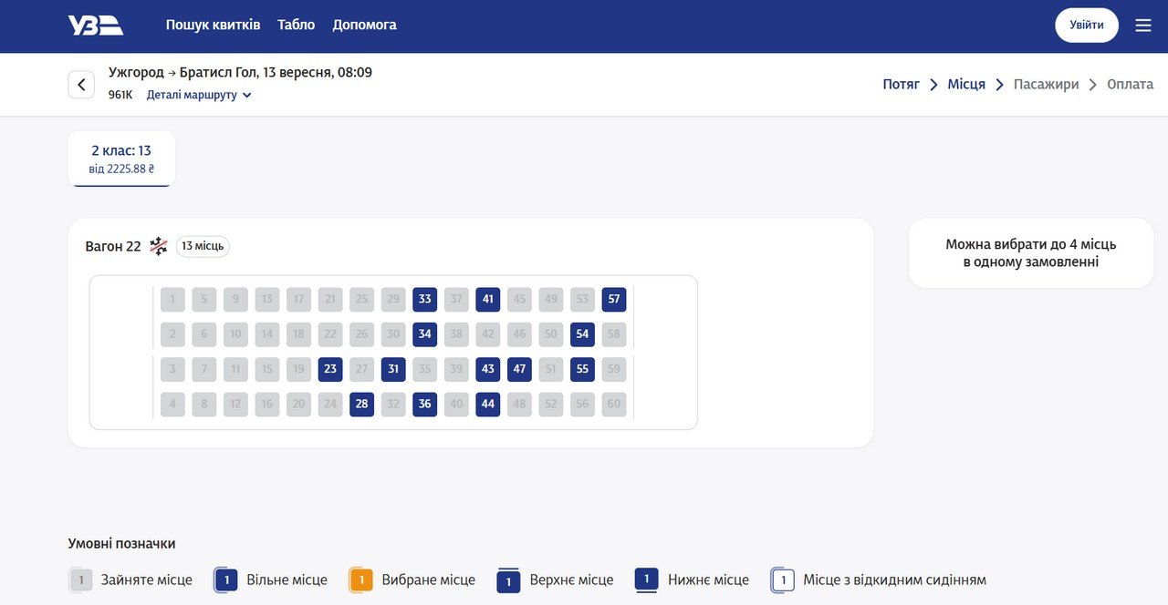 За билет 2 класса из Ужгорода в Братиславу нужно заплатить 2226 гривен.