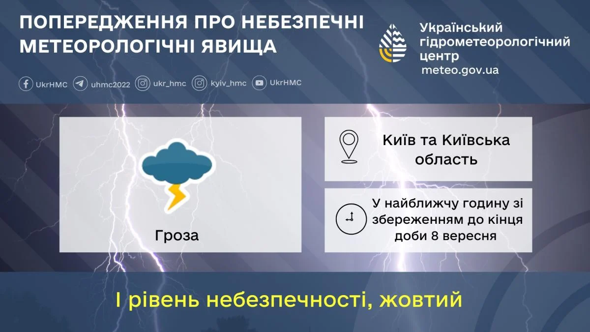 «В ближайший час с сохранением до конца суток 08 сентября гроза», — говорится в прогнозе.