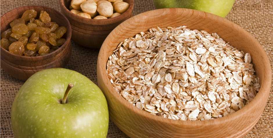 - Быстрые овсяные хлопья заливали кипятком, добавляли нарезанное зелёное яблоко, изюм, измельчённые грецкие орехи и ложку мёда. По желанию — кедровые орешки.