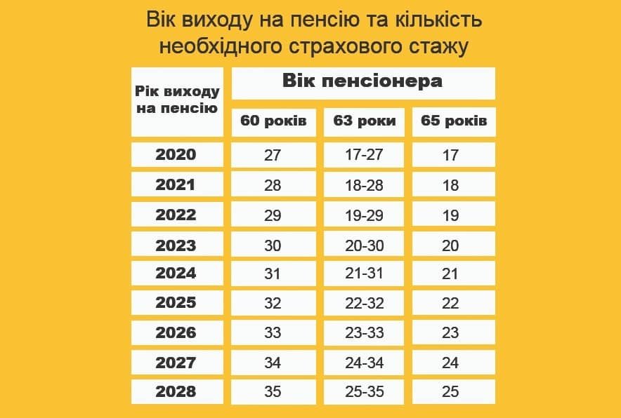 Следует помнить, что к 2028 году в Украине будут расти требования по количеству лет страхового стажа, необходимого для выхода на пенсию. Например, чтобы выйти на заслуженный отдых в 60 лет, нужно иметь 35 лет стажа (теперь это требование составляет 32 года).