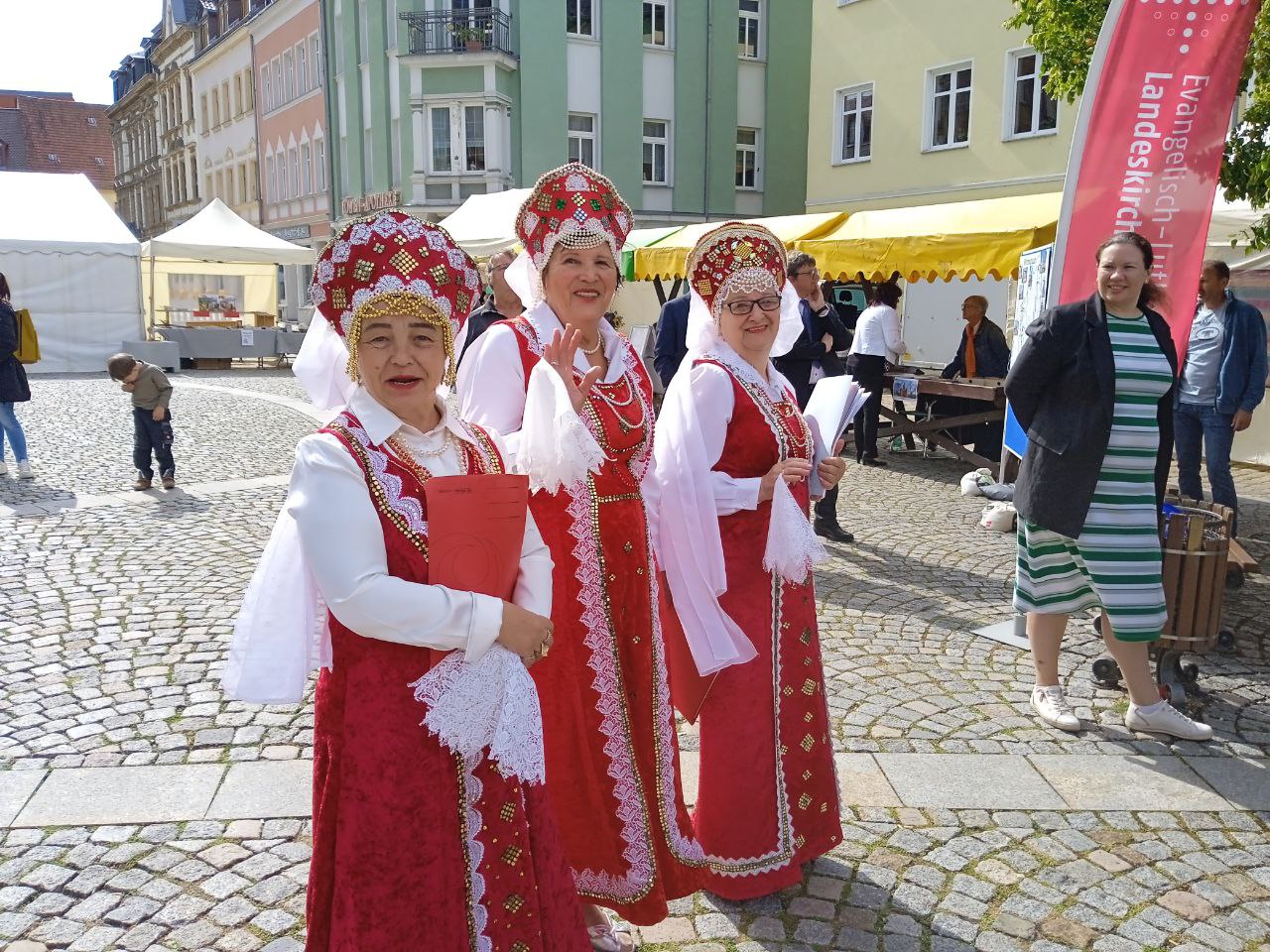 Те, кто оказываются на данном мероприятии впервые и ожидают много немецкой речи и фольклора, могут сильно удивиться. Конечно коллективы приехали из разных городов Саксонии, но повсюду звучит русская речь. Это не удивительно, так основная масса участников хоров и танцевальных коллективов это переселенцы с постсоветского пространства.