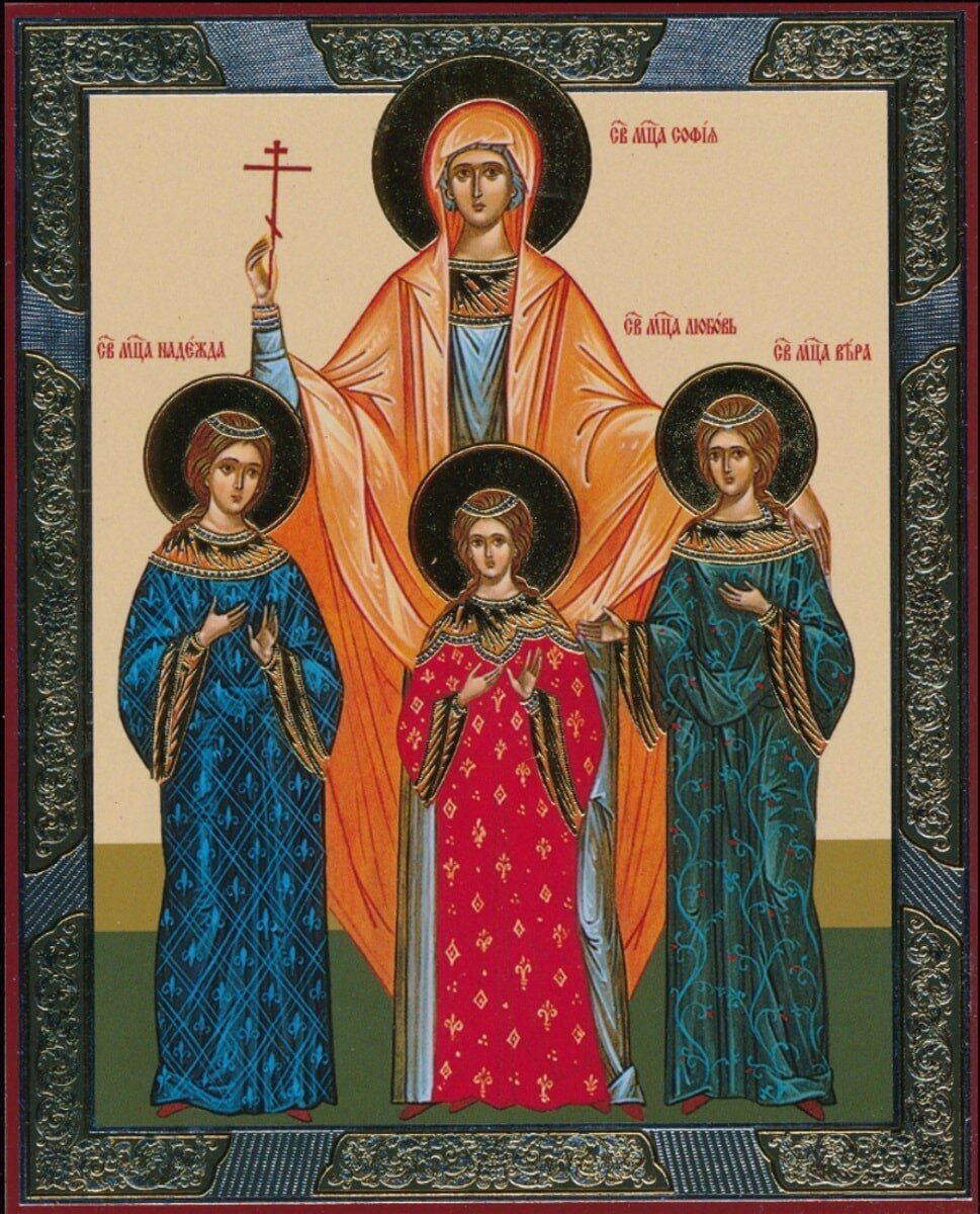 30 сентября православная церковь празднует день раннехристианской мученицы Софии и трех ее дочерей, названных в честь христианских добродетелей: Пистис (Вера), Элпис (Надежда) и Агапе (Любовь).