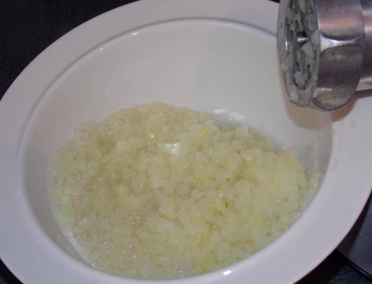 Лук, прокрученный на мясорубке