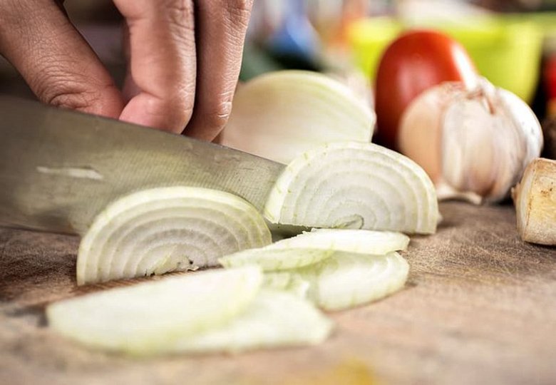 Классический способ, при котором лук мелко режется ножом.