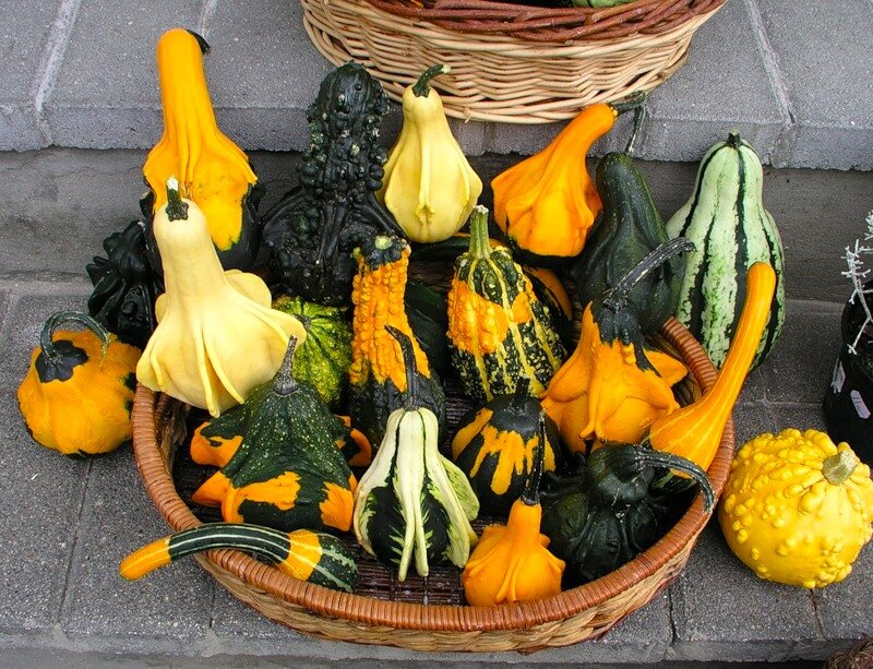 Карликовые сорта тыквы и кабачков: Мелкие тыквы необычных форм (например, сорта «Желудь») или кабачки с декоративно-пятнистой листвой могут служить отличным почвопокровным элементом. Они эффектно стелются по земле, а их плоды украшают сад до глубокой осени.