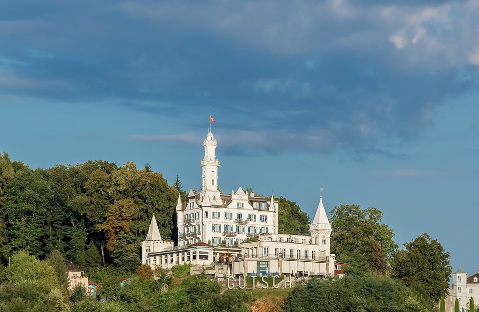 Замок Гютч (Château Gütsch) — самозванец на вершине. Построенный в XIX веке богатым промышленником, он воплощает мечту каждого: «Хочу свой замок!». И он у него есть. Правда, выглядит он так, будто его собрали из деталей конструктора «Средневековье для начинающих» — здесь башенка, там стрельчатое окно, и всё это с легким налетом театральной бутафории.