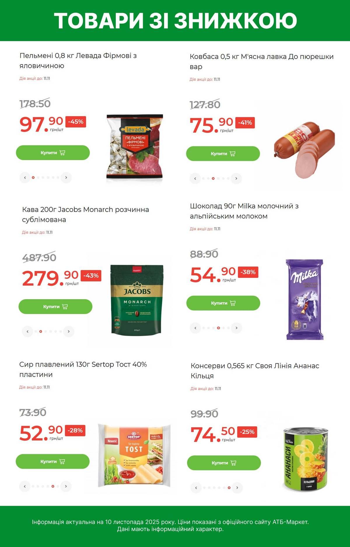 Есть еще несколько товаров, скидки на которые составляют около 25%. В общем, весь список продуктов доступен на сайте АТБ. Ниже приводим скриншоты тех продуктов, которые еще два дня будут продавать дешевле.