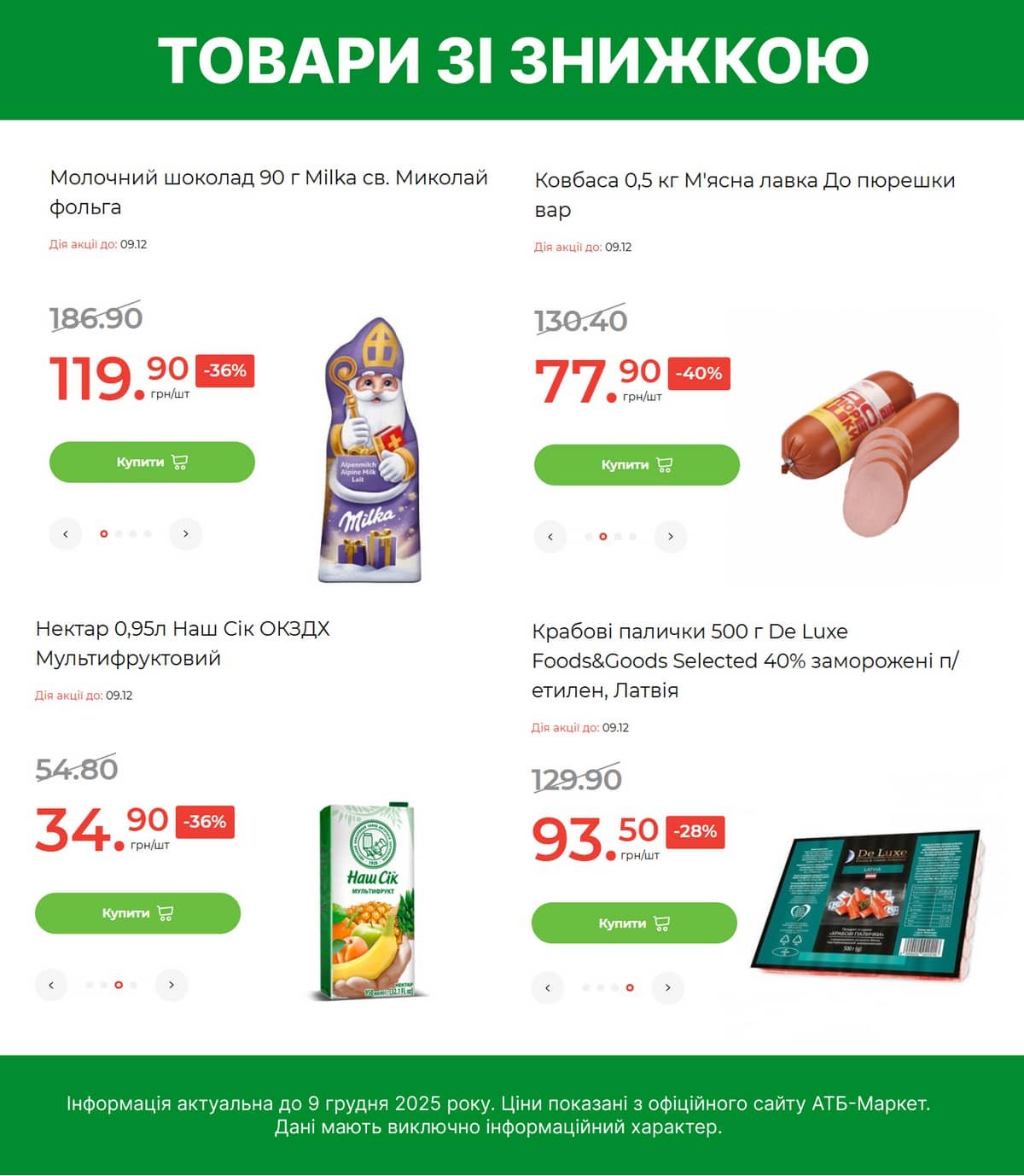 В декабре расходы для украинцев существенно растут. В этот период обычно цены на овощи и фрукты повышаются, и расходы вырастают из-за увеличения количества покупок накануне праздников. Сразу же становится актуальным вопрос об экономии денег. Традиционно потребители ищут более низкую стоимость. Издание PMG традиционно информирует покупателей, в каких супермаркетах снизили цены и на сколько. В данном случае АТБ проводит акцию в рамках которой реализует некоторые товары на 40% дешевле.