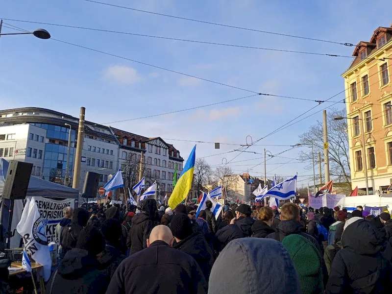 «Левое» напряжение субботнего дня в Саксонии. Пропалестинские и произраильские антифашисты вышли на улицы Лейпцига. Фото и видео репортаж