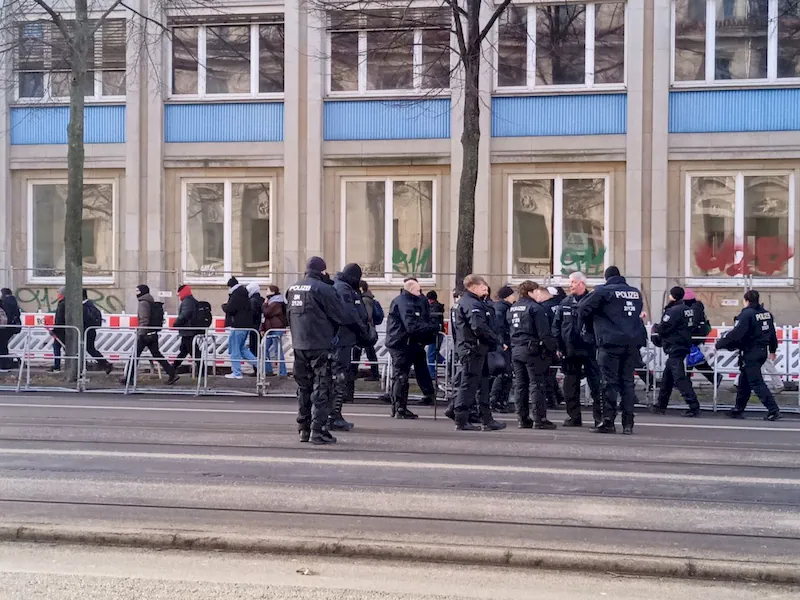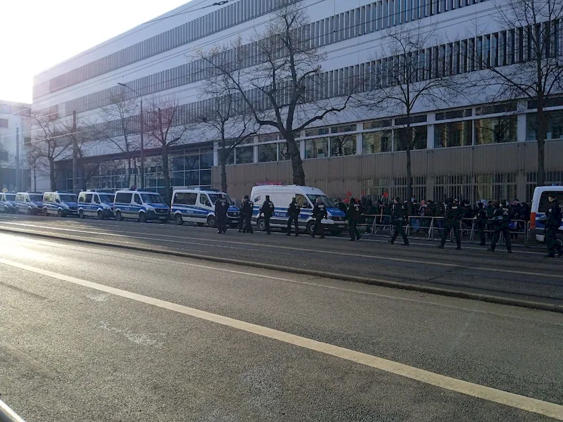 На момент подготовки материала, к счастью, о существенных конфликтах в городе среди протестующих пока не известно. Сегодня днем, пресс-секретарь полиции Олаф Хоппе сообщал, операция пока проходит «в основном мирно». Хотя полиция сообщала, что за пределами Лейпцига леворадикальные силы в последние недели мобилизовались для участия в демонстрации «Анфита означает Свободную Палестину» в Конневице. По предварительным данным, в общей сложности примут участие более 3000 человек. Но закрытие главного железнодорожного вокзала (временное) вызвало многочисленные задержки прибытия.