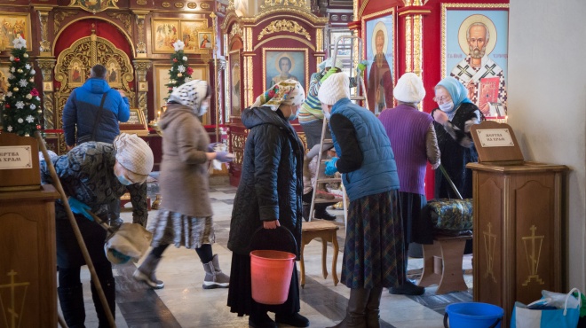 После утреннего умывания идут в баню, чтобы чистым было еще и тело, а затем — в церковь на службу. В этот день на литургии вспоминается Тайная вечеря — важное событие в христианстве. А под конец службы все прихожане причащаются. Перед этим, по церковным правилам, нужно исповедаться: сделать это можно в четверг утром или накануне, в Великую среду.