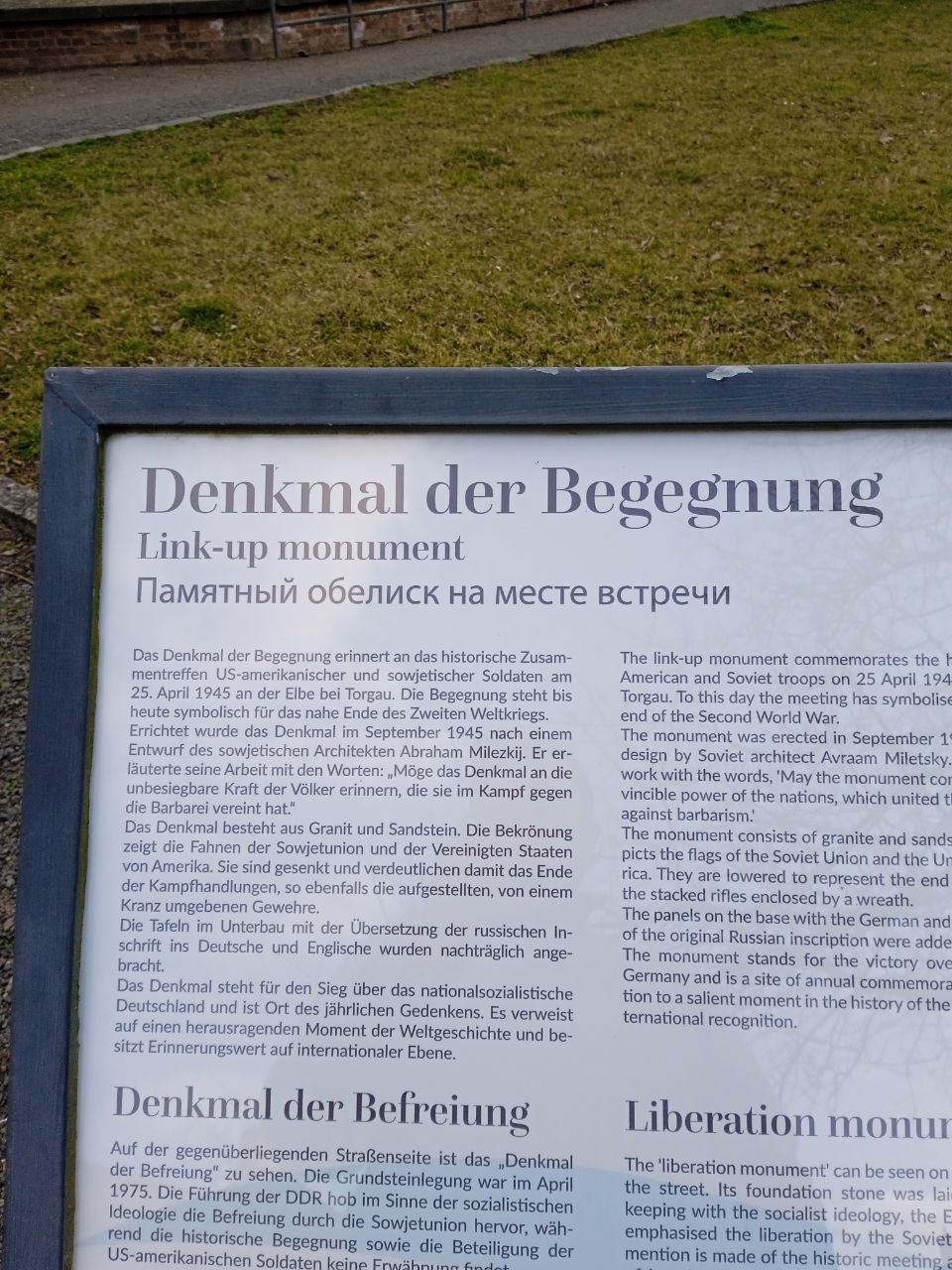 10:00 — Час памяти у памятника Встречи (Denkmal der Begegnung). Возложение венков, краткие речи, акцент на «клятве от Торгау» — обещании наций жить в мире.