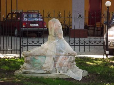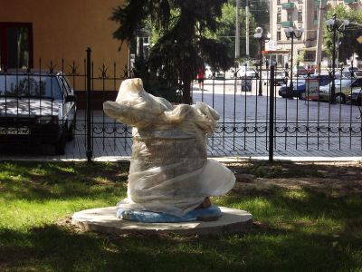 В Луганске откроют парк скульптуры «Сказочный мир». Пока фигуры прячут под полиэтиленом