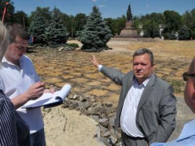 В пятницу, 20 июля, Валерий Голенко посетил Краснодон. Город активно готовится к предстоящим торжествам. Рабочие уже готовят площадь перед музеем к укладке новой плитки, реставрируются ступени подножия памятника «Клятва».