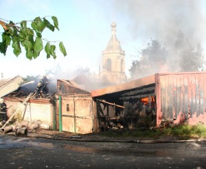 В Луганске горел дом, соседствующий с храмом