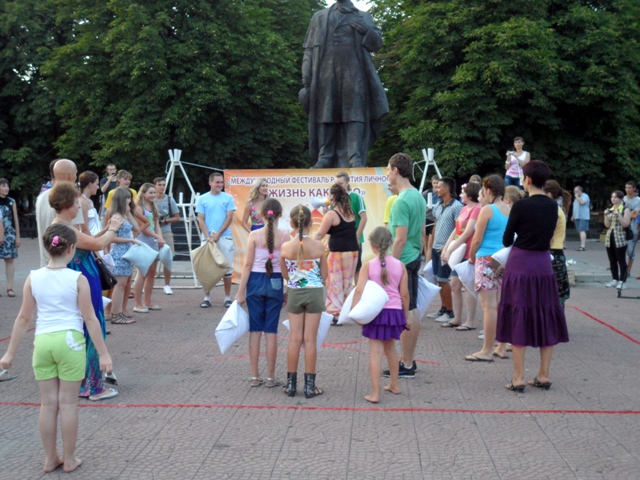 Самые активные участники подушечных боев получили призы – подарочные билеты на Международный фестиваль «Жизнь как чудо», который пройдет в Луганске 9-12 августа.