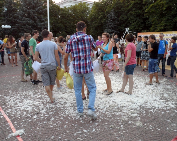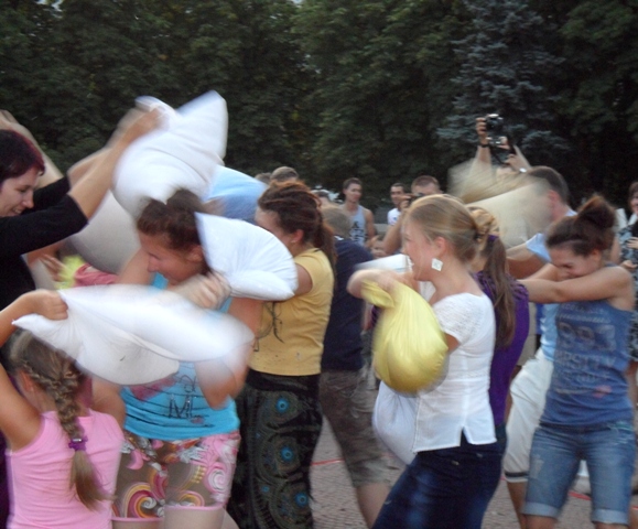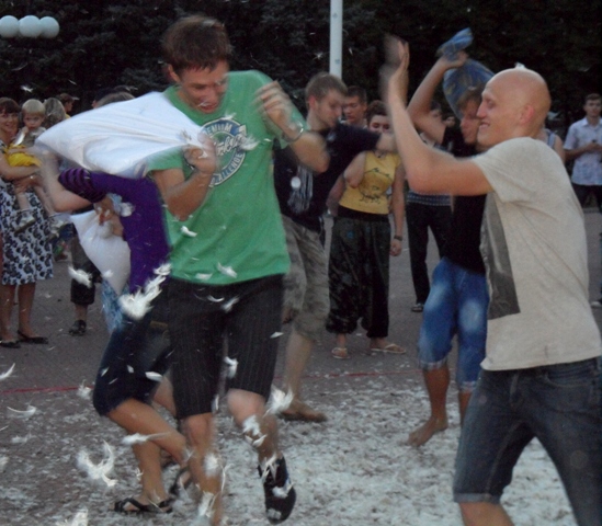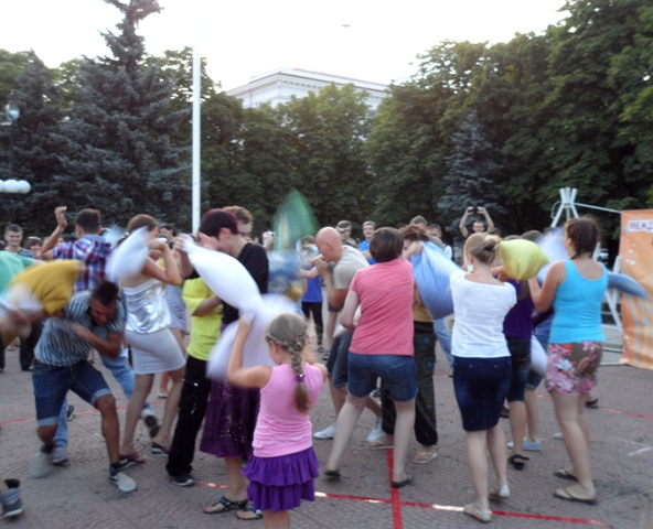 Луганчане дрались подушками прямо в центре города