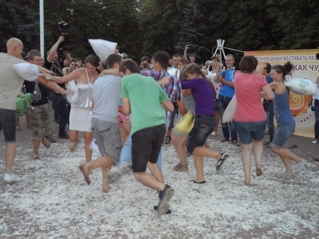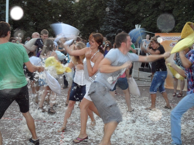 Подобные массовые открытые бои подушками уже давно проводятся в Нью-Йорке, Париже, Лондоне и других городах. Такая акция, по словам организаторов, не призывает к насилию, а наоборот – заменяет пассивный образ жизни на активный, напоминает о детстве, показывает всем, что каждая секунда нашей жизни – это настоящее чудо.