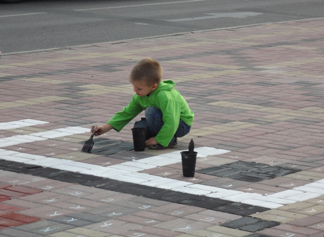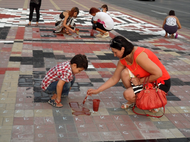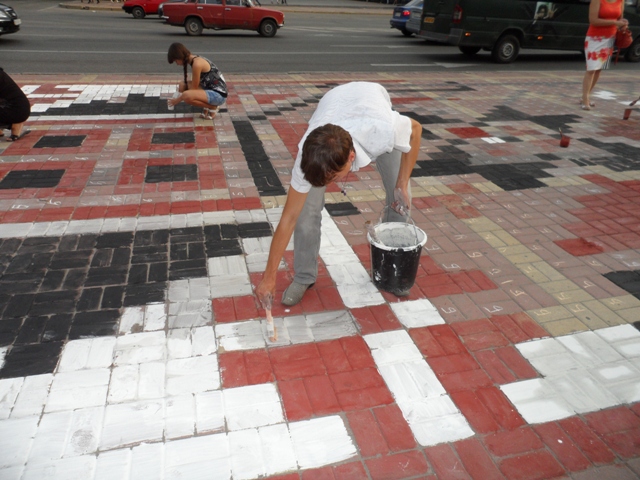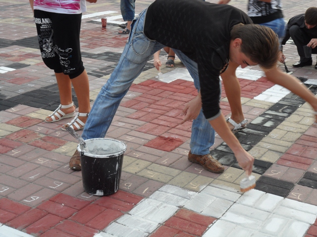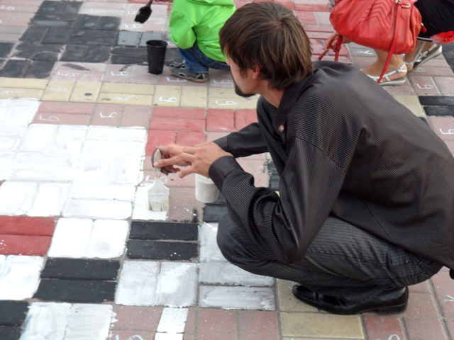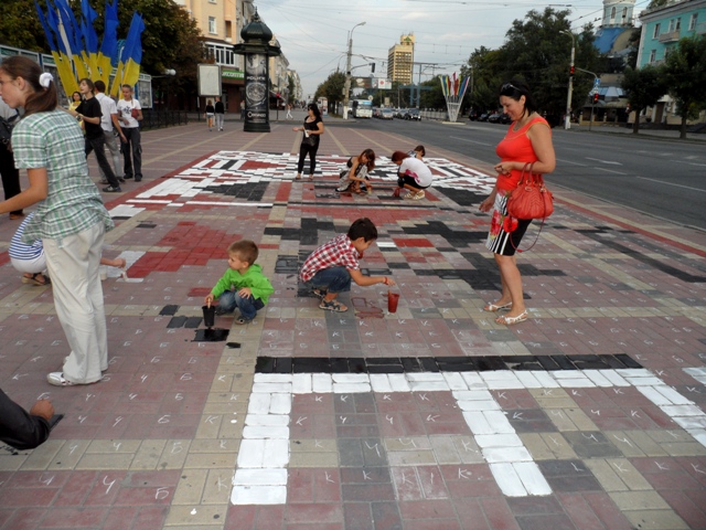 И это, по словам организаторов, не удивительно, ведь нанесение на плитку украинского орнамента – несложная задача: «Мы заранее обозначили клеточки буквами, обозначающими определенный цвет: красный, черный или белый. Их нужно только лишь раскрасить. Поэтому это сможет сделать любой человек, а не только художники».