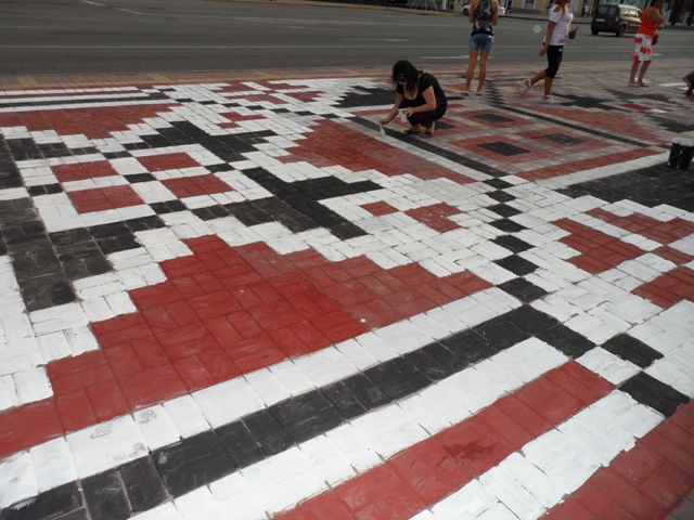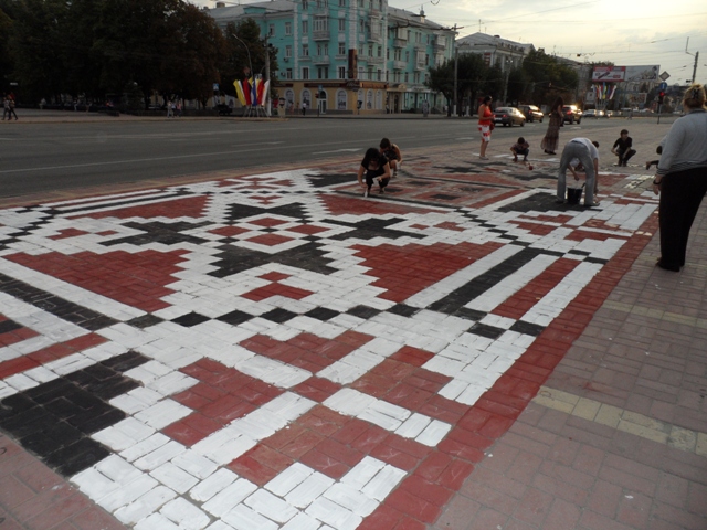 Напомним, 9 июля в поддержку Украины и украинского языка луганские активисты нарисовали на ул. Советской орнамент традиционной украинской вышивки.