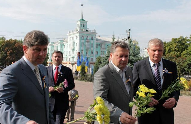 После этого руководители города и области торжественно возложили цветы к памятнику Тарасу Шевченко в центре Луганска.