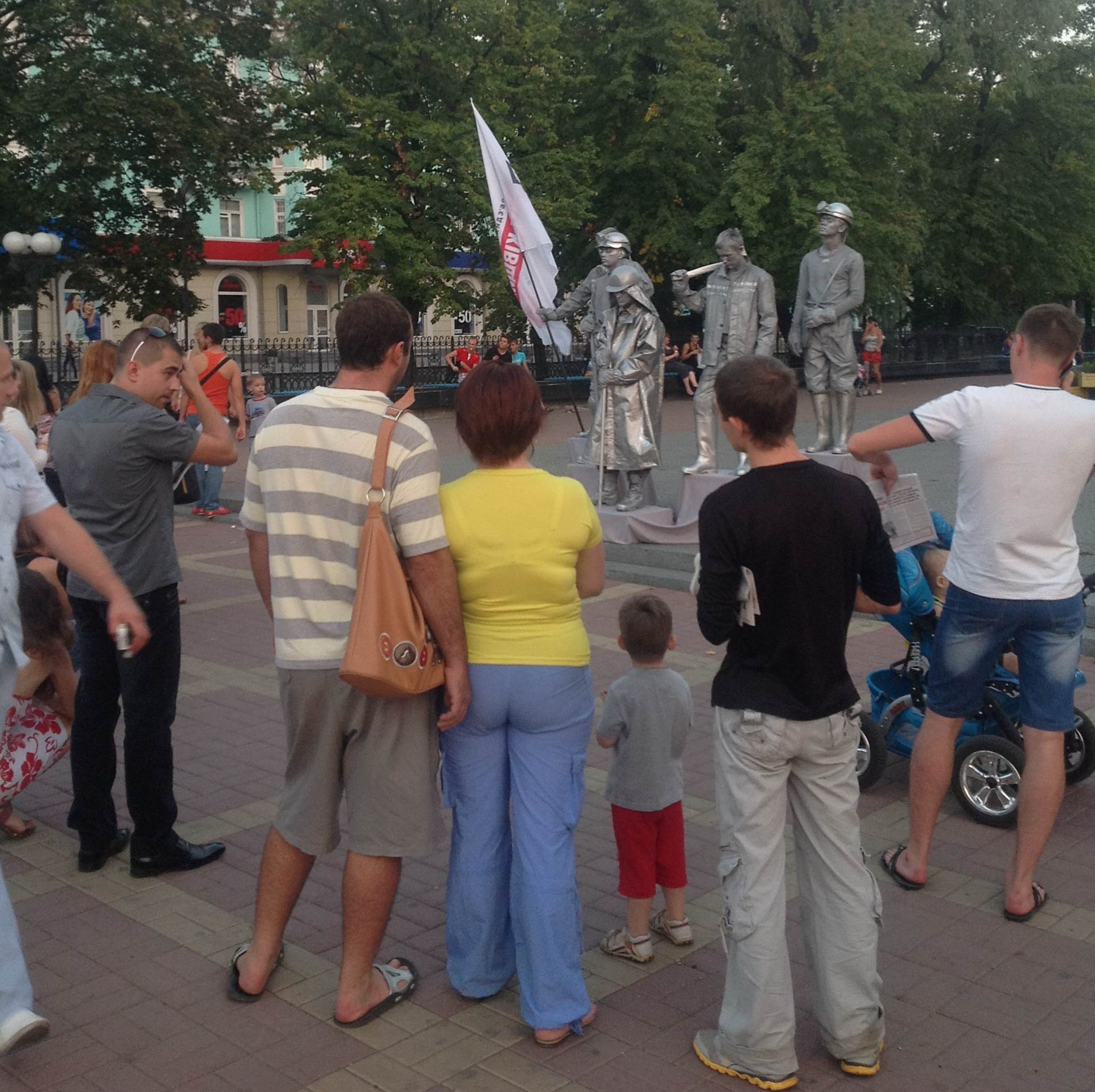 Объединенная оппозиция поздравила луганских шахтеров инсталляцией из живых скульптур