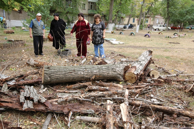 Как рассказали жильцы, деревья в их дворе были посажены еще во время постройки домов и с тех пор ни разу не обрезались. При том, что эта необходимая сезонная процедура стимулирует рост новых веток и омоложение растения. Кроме того, последние годы молодогвардейцы не без причин стали опасаться за свою безопасность – во время сильных порывов ветра старые сухие ветки срывались вниз, а у одного из домов накренившееся старое дерево повредило часть крыши. В нескольких местах сучья грозили разбить окна.