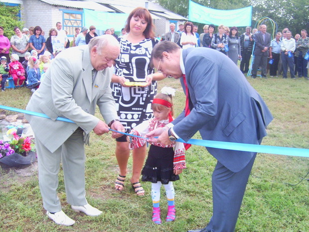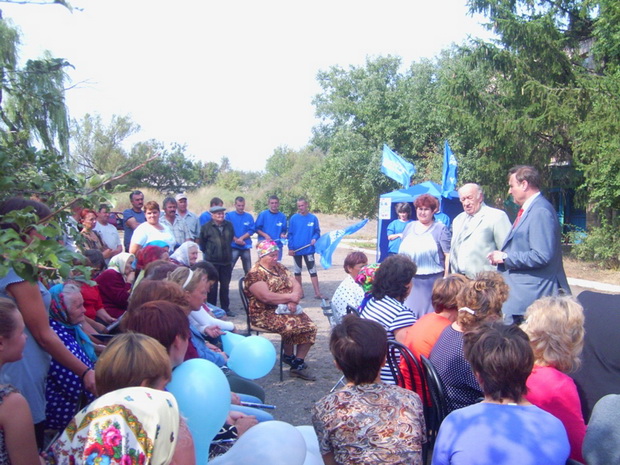 На встрече с жителями села Курячевка Владимир Демишкан открыл новую детскую спортивно-игровую площадку, а в пгт. Марковка регионал принял участие в торжественном открытие дороги.