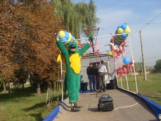 Традиционно с украшенной открытой платформы луганчан приветствуют, поздравляют, призывают присоединиться к празднованию Дня города артисты в национальных костюмах и ростовые куклы в образах известных мультипликационных героев. С трамвая звучат праздничные песни и произведения о нашем городе.