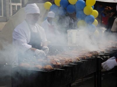 Зафиксировать все 400 килограмм жаренного мяса не получится, так как его сразу же раскупают жители и гости города.