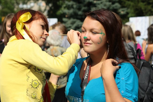 Группа луганчан с разрисованными лицами захватила центральный сквер города (фото)