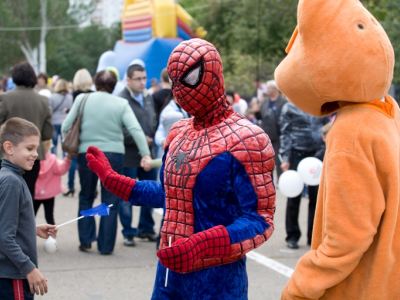 Дальше публику ожидало невероятное представление театра «Аншлаг». Восторженные выкрики малышни раздались с первых же секунд выступления. Еще бы – ведь на сцену выбежали всем знакомые Маша и Медведь. Услышав машин задорный голос даже те дети, что стояли поодаль, побежали к сцене, увлекая за собой родителей. А когда главные герои спустились со сцены, чтобы устроить веселый паровозик, ребятня пришла в полнейший восторг. Поучительная история непослушной Маши завершилась веселой викториной, в которой малыши отвечали вопросы о правильном поведении.