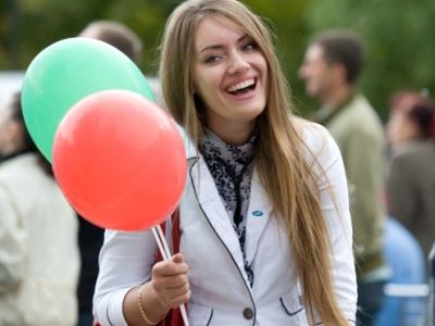 Сегодня здесь праздник - День Ленинского района. Я живу здесь, мне очень нравится наш район. Я очень люблю праздники, люблю веселиться. И я рада, что сегодня здесь так весело.