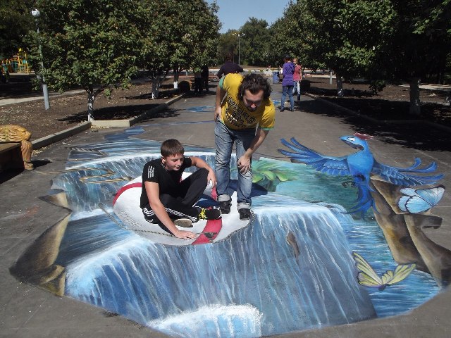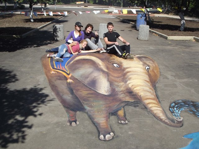 Художники из Днепропетровска украсили дороги Алчевска 3D рисунками (фото)