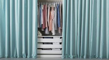 И довольно неожиданная идея – скрыть гардероб за шторами.
